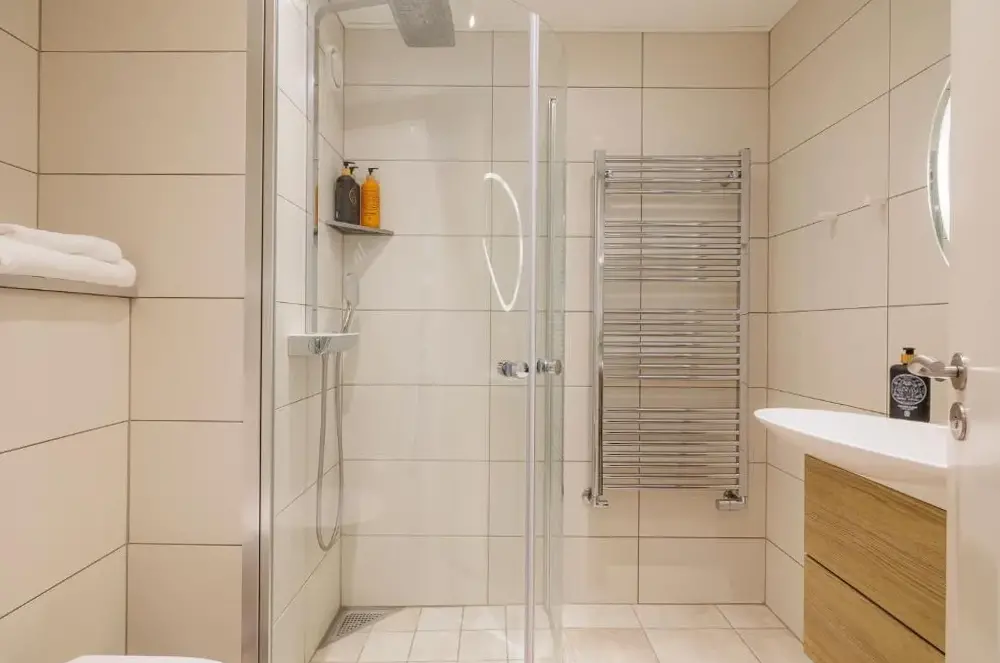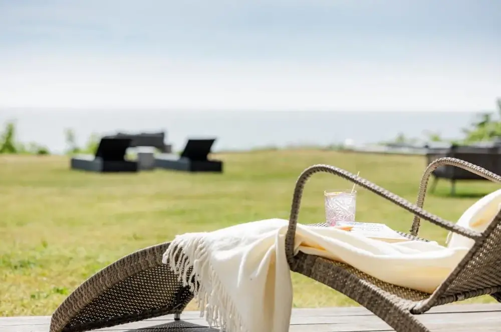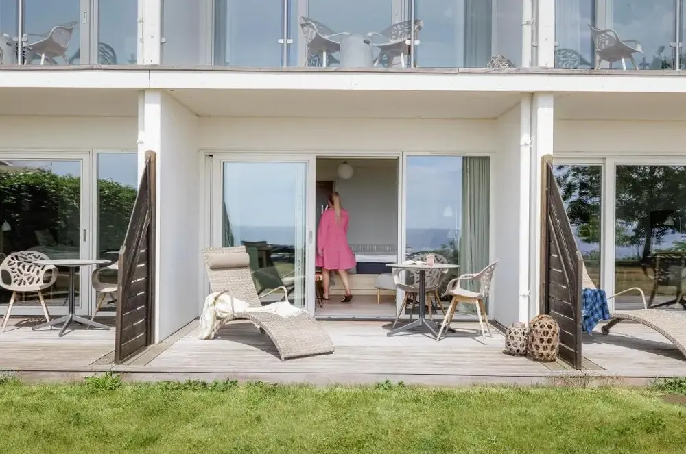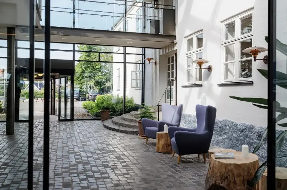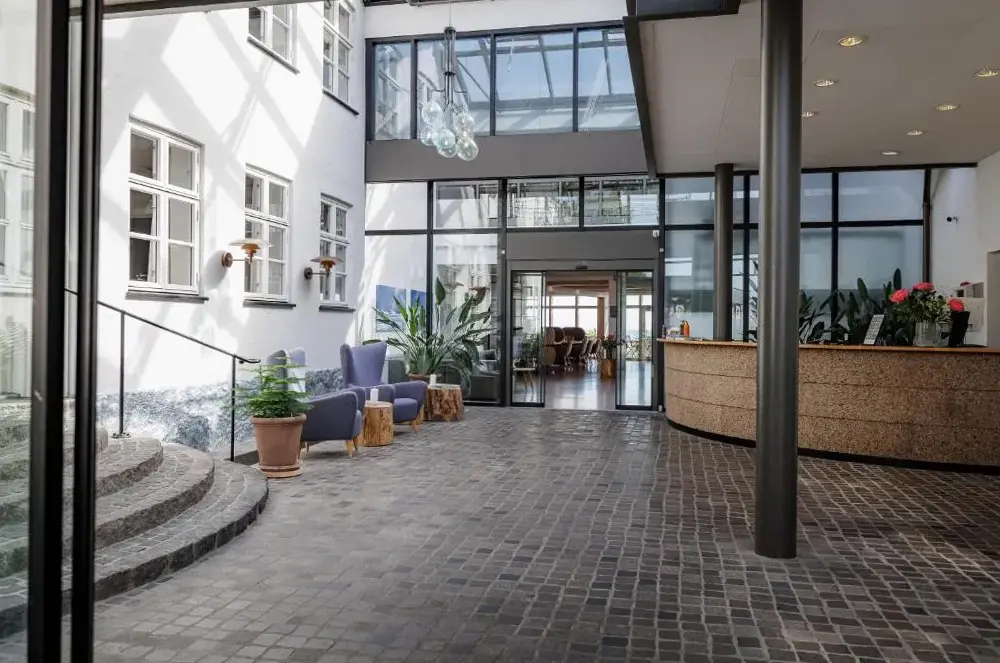 De moderna och ljusa möblerna på hotellet och det rymliga rummet.